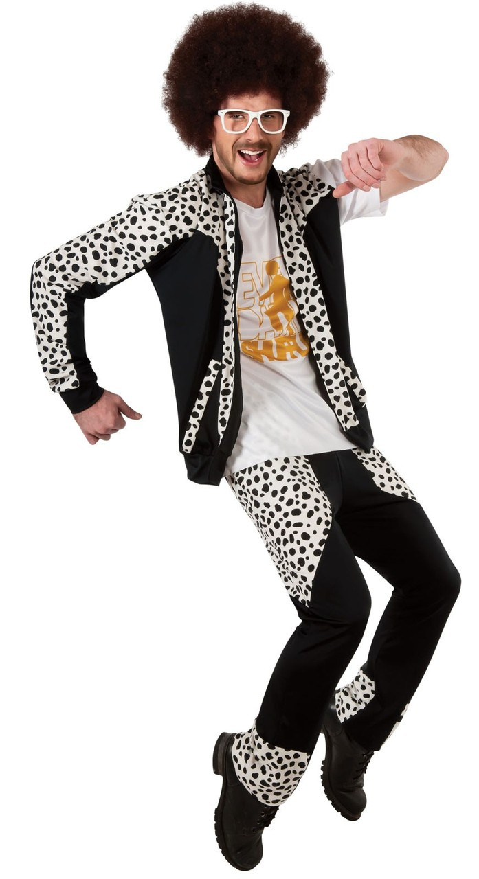 Get shuffling in this cool LMFAO Red Foo Costume! This costume includes: - Black and white jacket with attached shirt - Pants Does not include wig, glasses, or shoes. This is an officially licensed LMFAO costume.